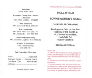 The Townswomen’s Guild meet at St Chads on the 3rd Tuesday of the month 2.00pm-4.30pm. They are a countrywide ladies organisation who offer friendship, fun and monthly speakers on a wide variety of subjects. New members are always welcome!