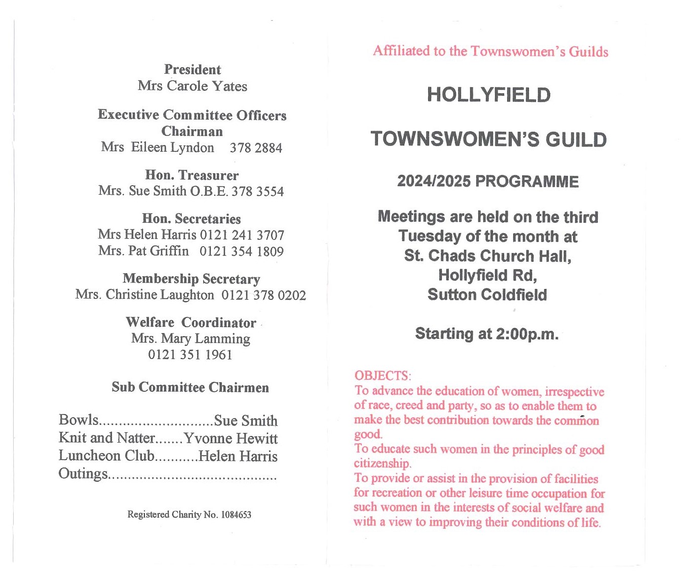 We are a branch of the National Association of women’s clubs. We are a friendly group who meet on the first Tuesday of the month at St Chads church hall, Hollyfield Road, Sutton Coldfield from 2pm to 4pm. We are a social club for women. We meet up, have a chat and a cuppa (we are environmentally friendly so ask you to bring your own mug) tea and coffee is provided.